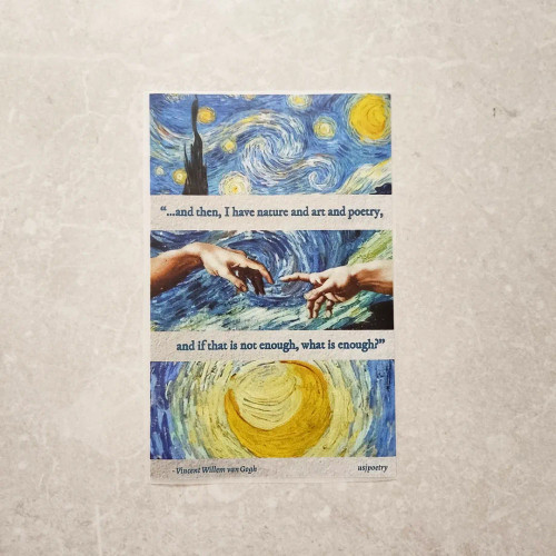 استیکر پارچه و لباس، طرح شب پر ستاره ونگوگ و متن