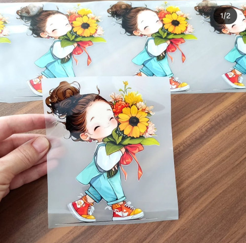 استیکر پارچه و لباس دختر و گل آفتابگردان
