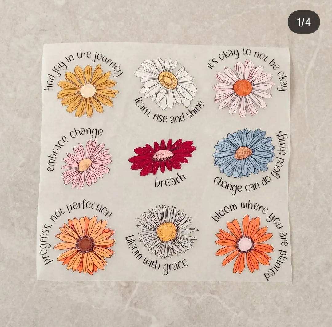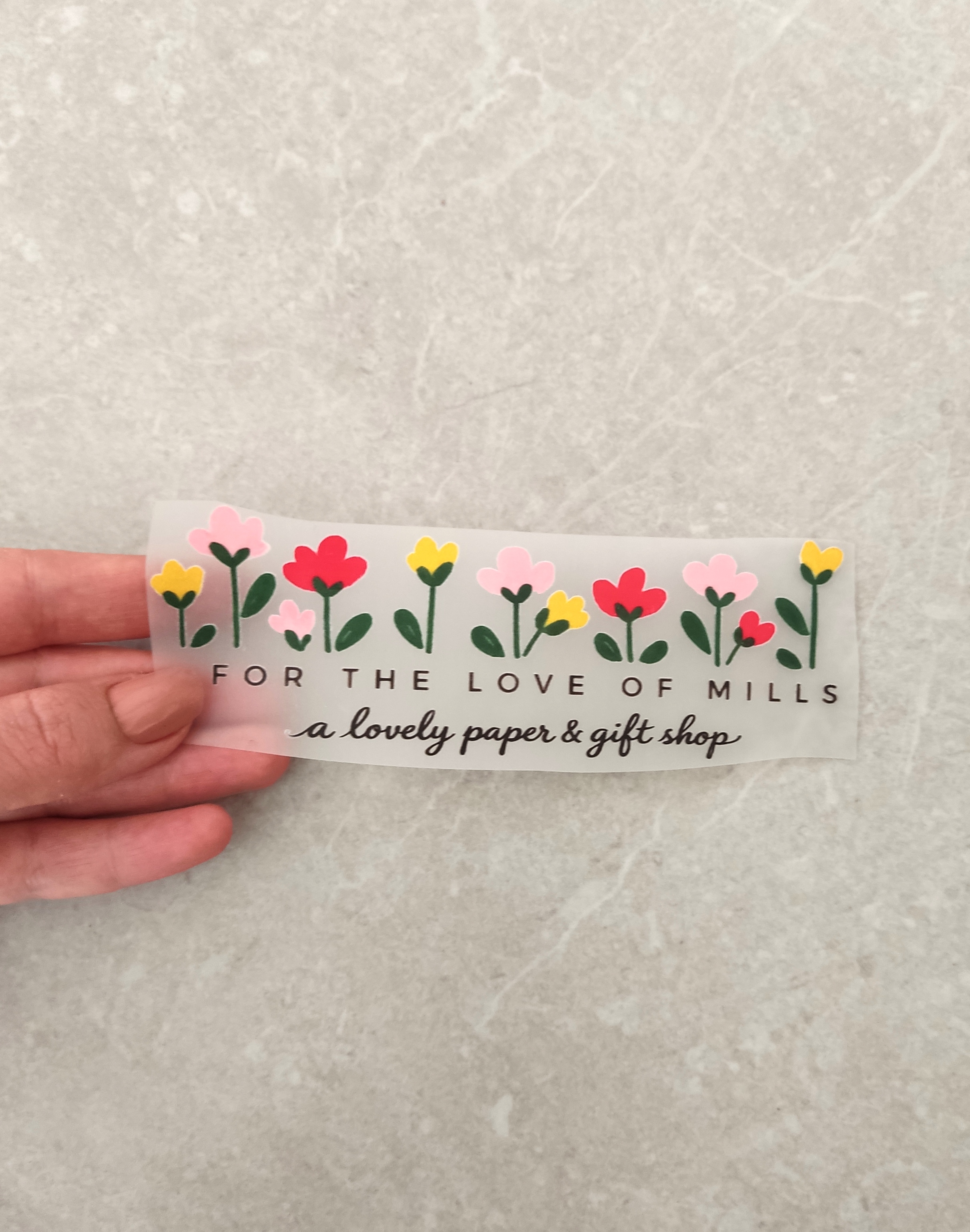 برچسب حرارتی گل رنگی و متن ۱۴ سانت