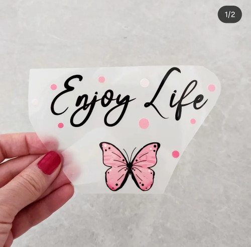 برچسب اتویی لباس، پروانه و متن از زندگی لذت ببر