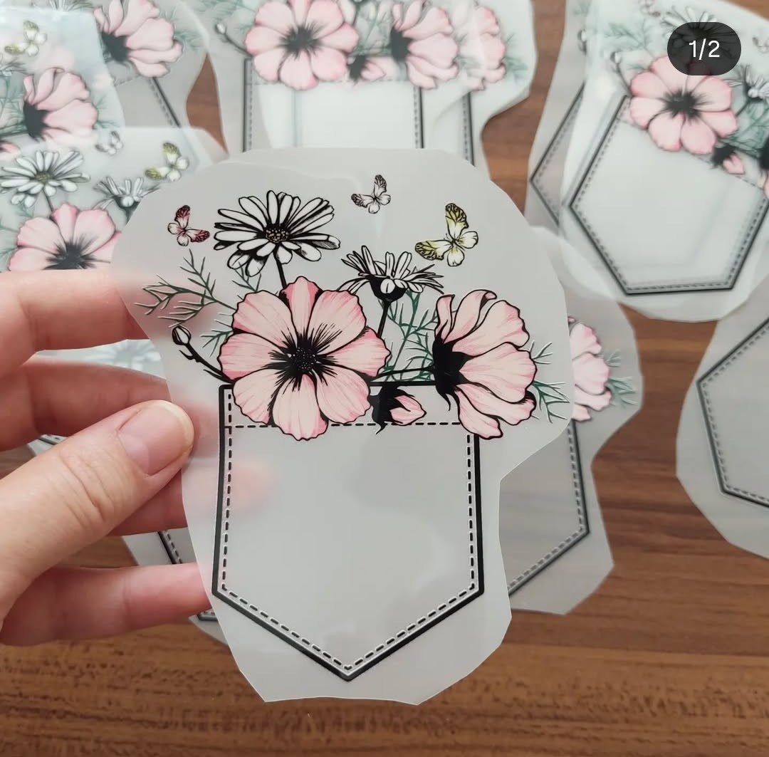 استیکر پارچه و لباس، گل رنگی و پروانه