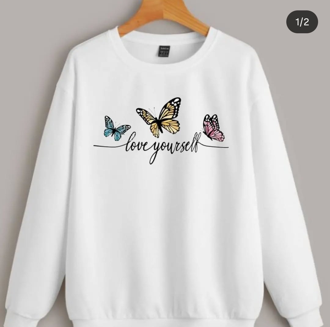 برچسب اتویی لباس، متن خودت را دوست داشته باش و پروانه ها