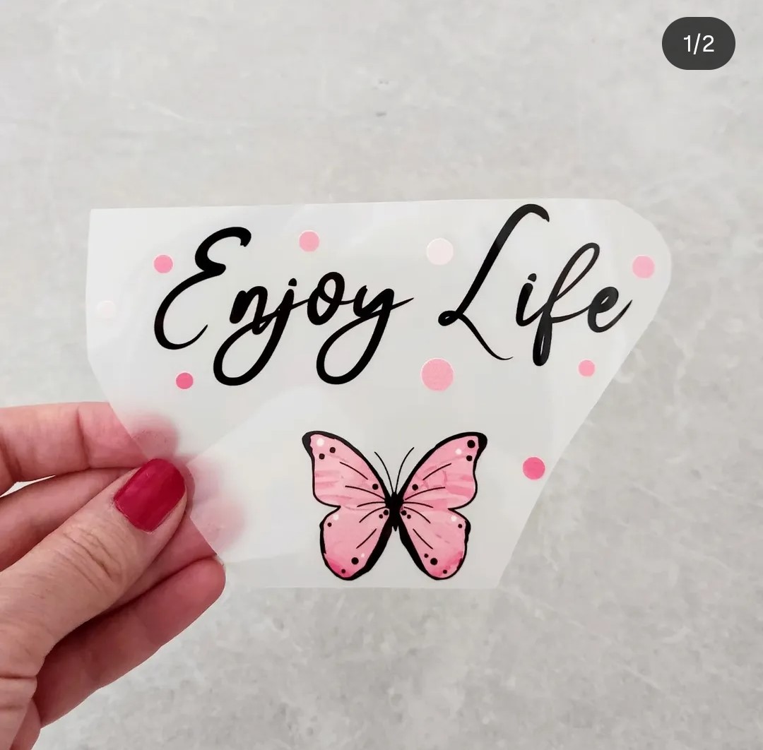 برچسب اتویی لباس، پروانه و متن از زندگی لذت ببر