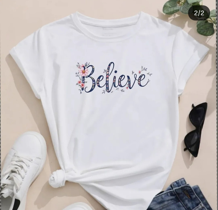 استیکر پارچه و لباس ( متن انگلیس و گل) بی لیو به معنای باور داشتن