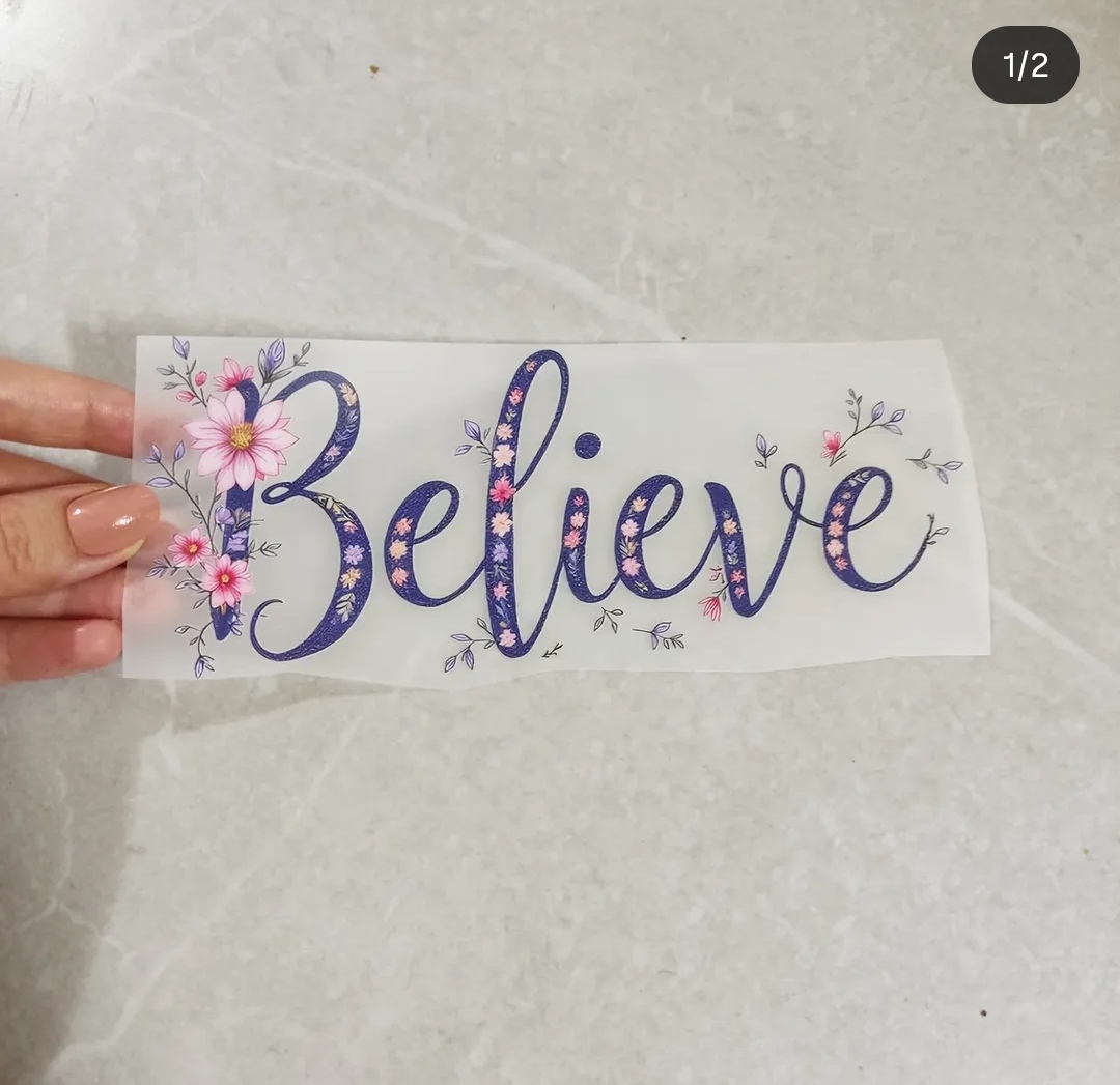 استیکر پارچه و لباس ( متن انگلیس و گل) بی لیو به معنای باور داشتن