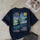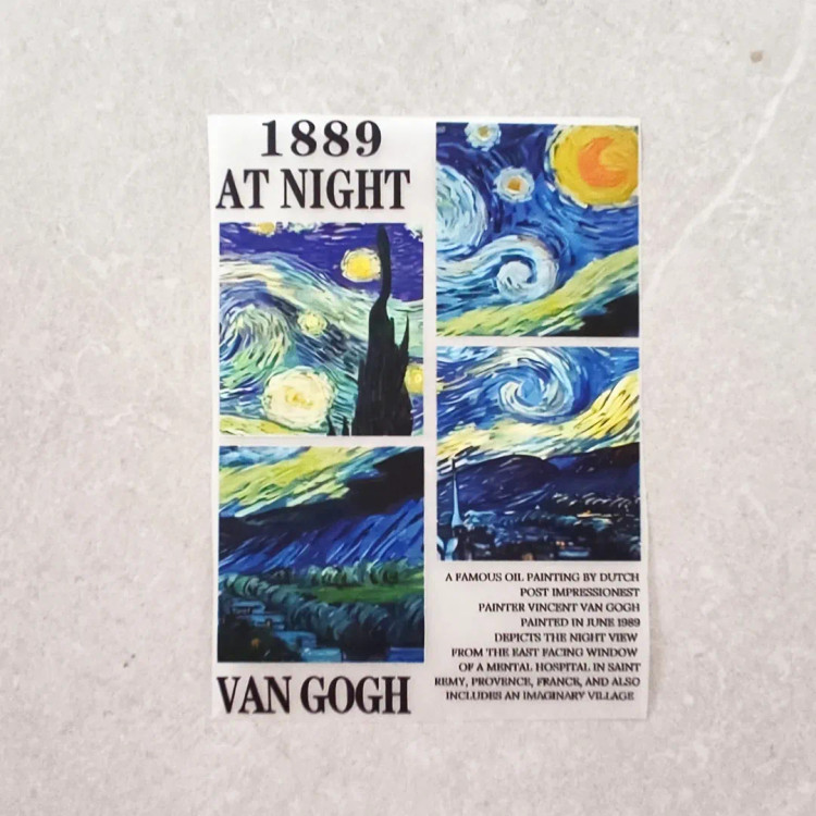 استیکر پارچه و لباس، طرح شب پر ستاره ونگوگ و متن