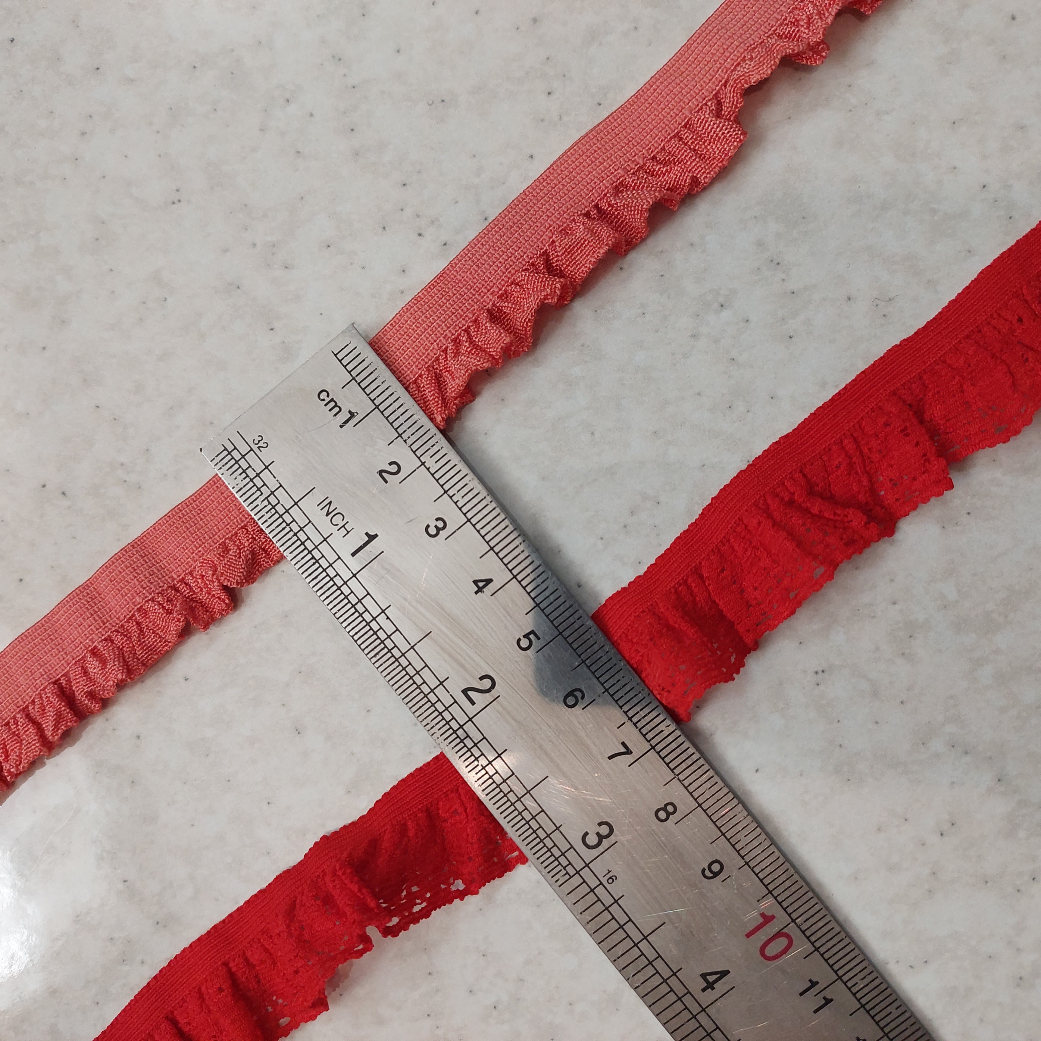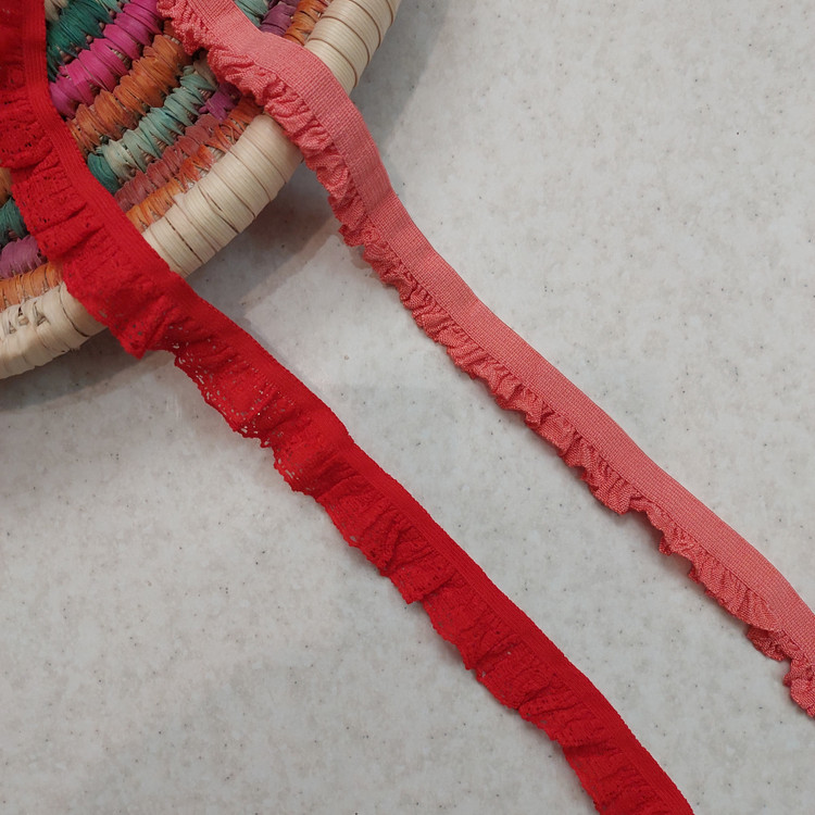 کش لباس زیر لبه توری رنگ گل‌بهی و قرمز
