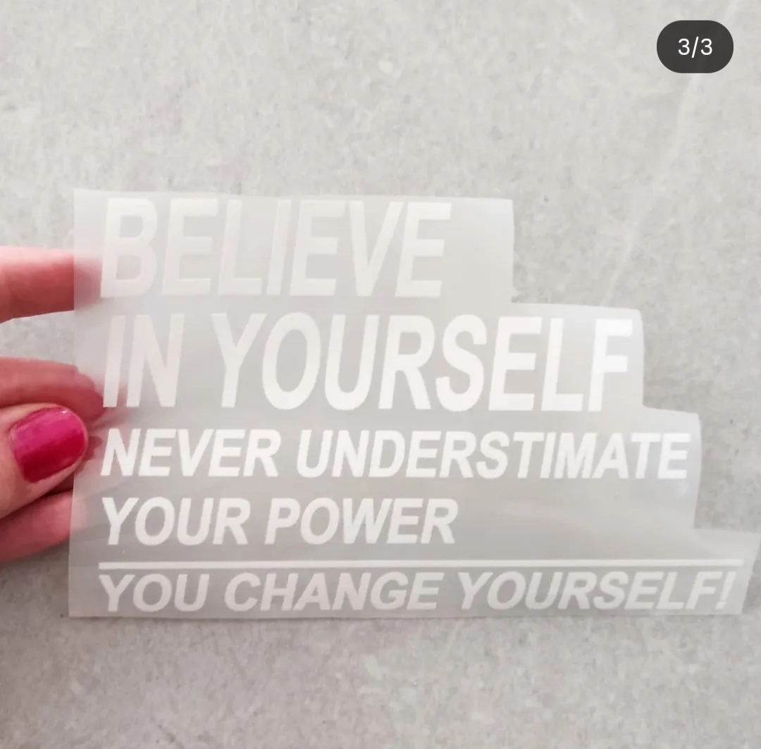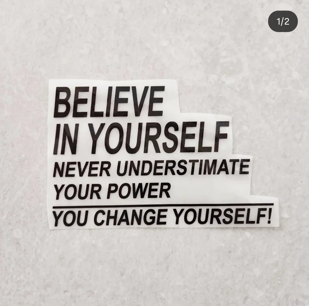 استیکر پارچه و لباس متن انگلیسی، خودت را باور داشته باش