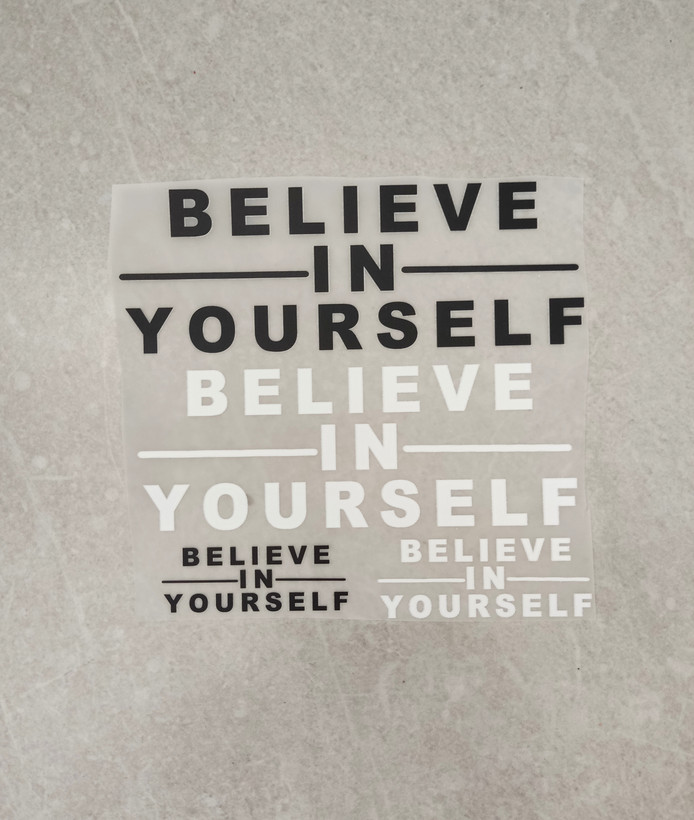برچسب حرارتی لباس، متن انگلیسی سفید و مشکی خودت را باور داشته باش
