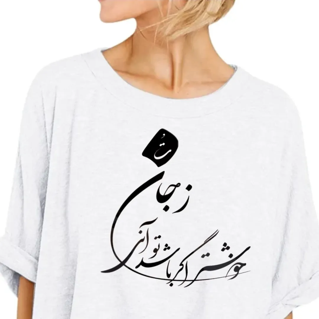 استیکر پارچه و لباس، خوشنویسی مولانا، زجان خوشتر اگر باشد، تو آنی